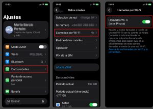 - Ajustes – Datos móviles – Llamadas por Wi-Fi